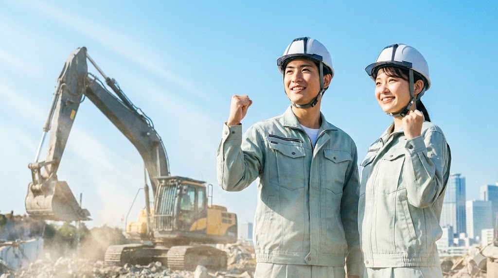 “飲食業から転職しました。 最初は体力的にきついかなと思いましたが、先輩たちが丁寧に教えてくれて、今では重機の資格も取得。 給料も前職より上がって、休みもしっかり取れるようになりました。